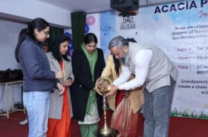 अकेशिया पब्लिक स्कूल नेहरूग्राम देहरादून में शनिवार को दादा दादी दिवस (ग्रैंड पेरेंट्स डे) मनाया गया। कार्यक्रम का शुभारम्भ विद्यालय के चेयरमैन मनमीत सिंह ढिल्लों व अन्य अतिथियों ने दीप प्रज्वलित कर किया। स्वागत भाषण में विद्यालय की प्रधानाचार्या पूजा मारिया ने सभी अभिभावकों को बच्चों की सही परवरिश करने व सही संस्कार देने हेतू प्रोत्साहित किया।