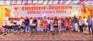 रक्तदान शिविर में सिटी मजिस्ट्रेट ऐ. पी. बाजपेई द्वारा भी रक्तदान किया गया ।