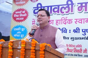 मुख्यमंत्री पुष्कर सिंह धामी ने सभी पत्रकारों को दीपावली की अग्रिम शुभकामनाएं देते हुए कहा कि दीपावली का पर्व हम सभी के जीवन में सकारात्मक ऊर्जा का संचार करता है। उन्होंने कहा पत्रकारों का जीवन भी दीपावली के दीपकों की तरह है, जो दिन-रात समाज को दिशा दिखाने का कार्य करते हैं। मुख्यमंत्री ने सभी लोगों से इस दिवाली स्वदेशी उत्पादों को अपनाने का अनुरोध किया है। उन्होंने कहा विकसित भारत और विकसित उत्तराखंड के निर्माण के लिए हमने अपने देश में स्वदेशी को बढ़ावा देना होगा।
